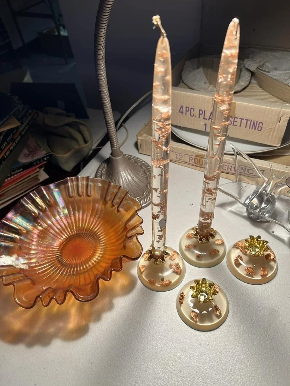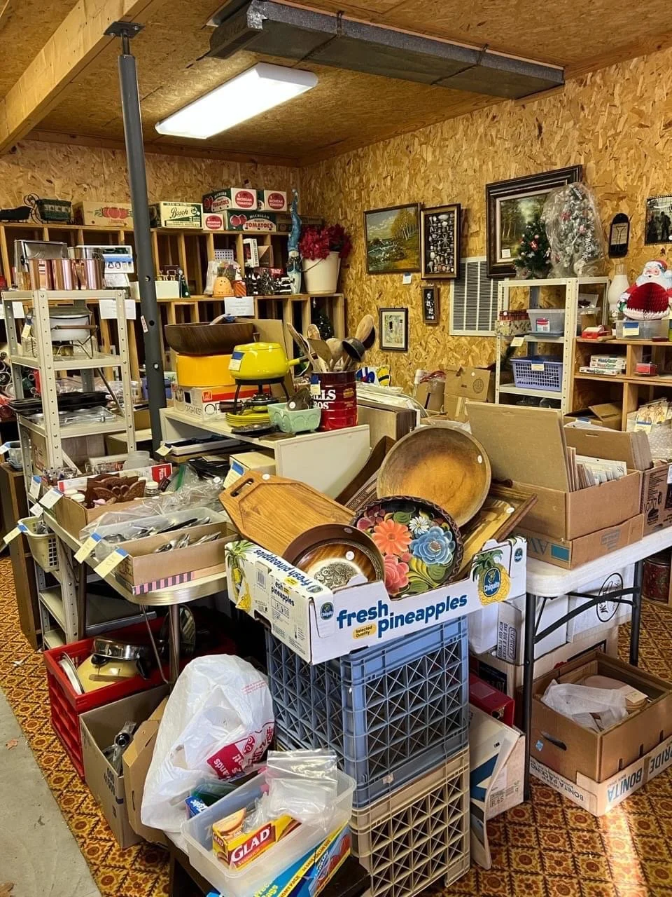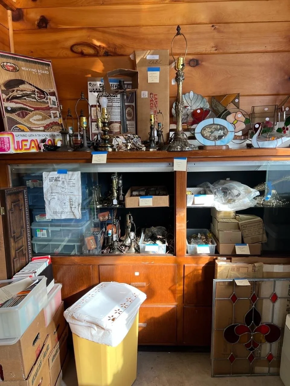 Stained glass making supplies, copper mining collectibles, many new old stock items, photographs, vintage Avon and Tupperware, old clothing, hats & purses, books, rag rugs, local ephemera, lamps, clocks, dolls, accordions, more info to follow.