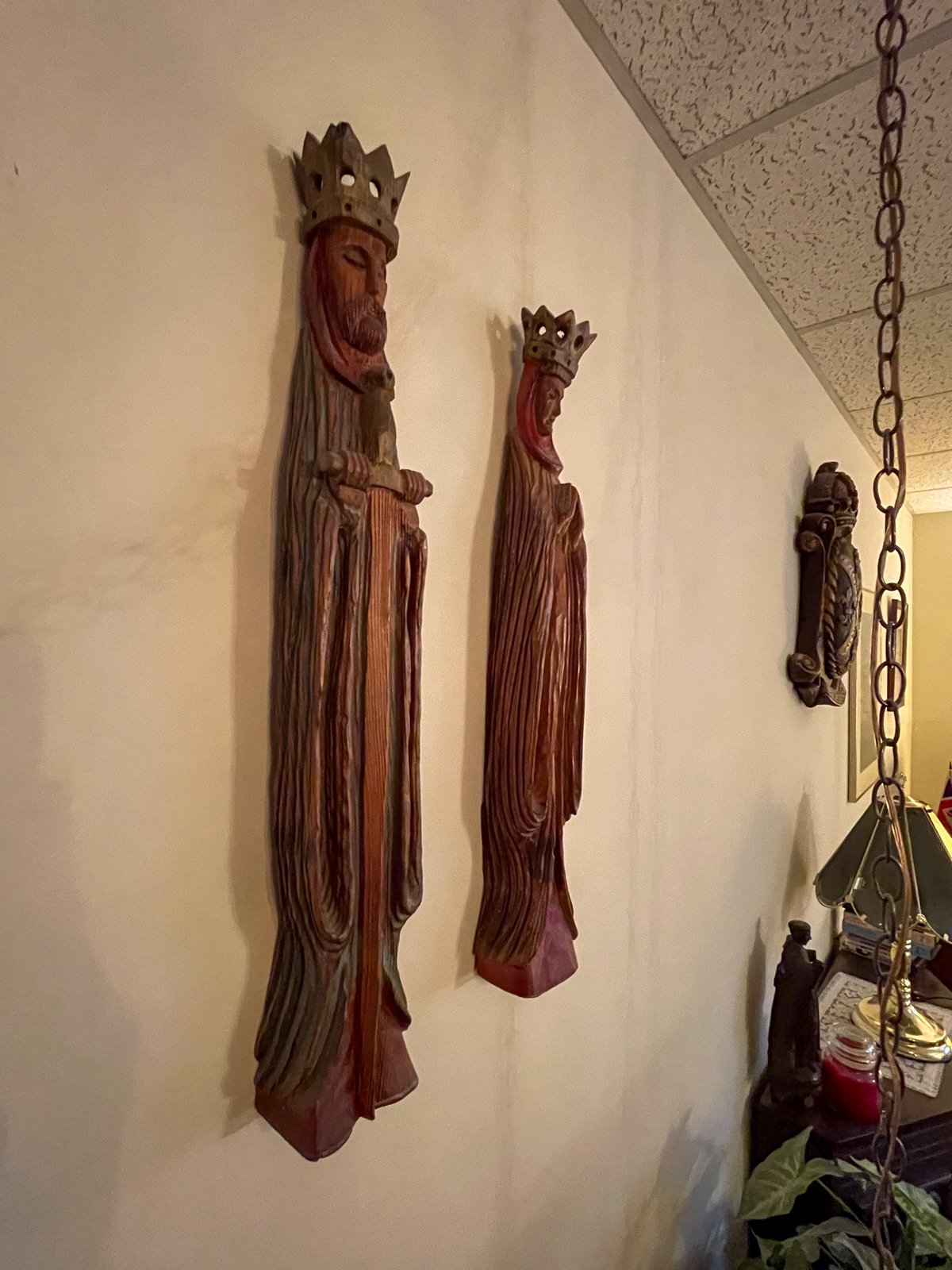 Lots of books (Tolkien, Literature, Harry Potter, Shakespeare, etc.), dragons, wizards, and unicorns, Mid Century Modern furnishings, Scandinavian glass, candles, museum gifts, Medieval & Renaissance posters & artwork, travel souvenirs, Russian porcelain, Irish linens, and religious items.